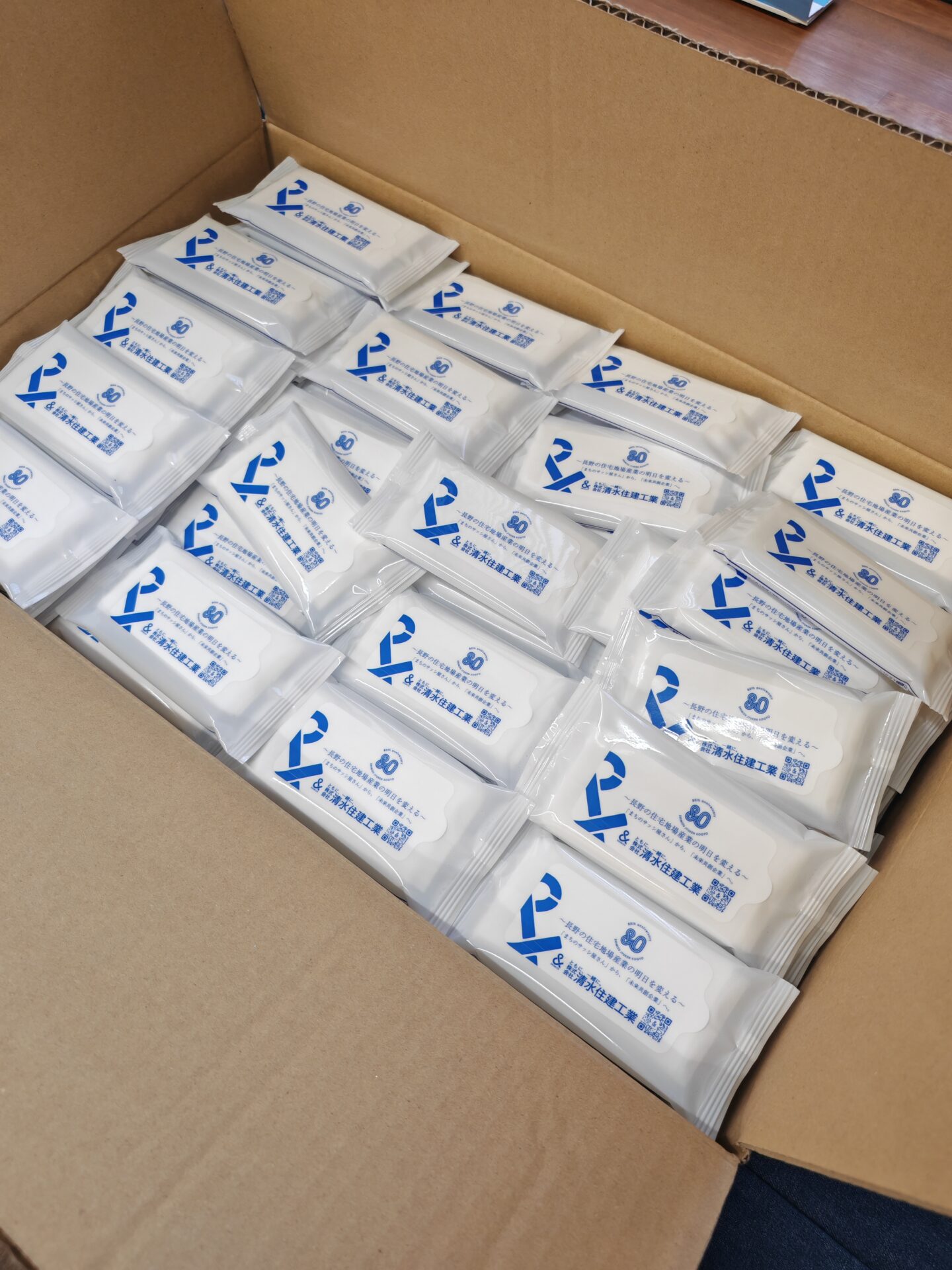 そんな思いをデザインに落とし込んだ(というか直接書いてますが)ウェットティッシュをお配りしてます。